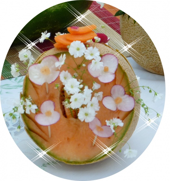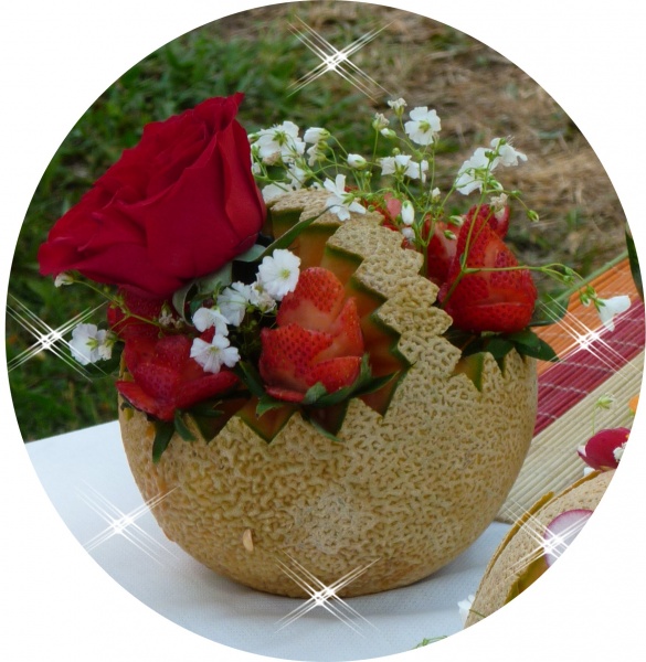 CANASTA DE MELON CON UN TALLADO DE